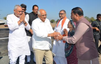 મુખ્યમંત્રી ભૂપેન્દ્રભાઈ પટેલનું વલ્લભીપુરના પચ્છેગામ હેલિપેડ ખાતે ઉષ્માભર્યું સ્વાગત