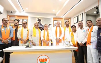અમરેલી લોકસભાના સાંસદના સમર્પણ કાર્યાલયનું ઉદ્ઘાટન કરતા માનનીય પ્રદેશ પ્રમુખ જગદીશ વિશ્વકર્મા અને ઉર્જા પ્રધાન કૌશિકભાઇ વેકરીયા