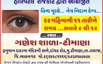રણછોડ દાસજી બાપું ચેરીટેબલ હોસ્પિટલ રાજકોટ દ્વારા વિનામૂલ્યે નેત્ર-નિદાન કેમ્પ ગણેશ