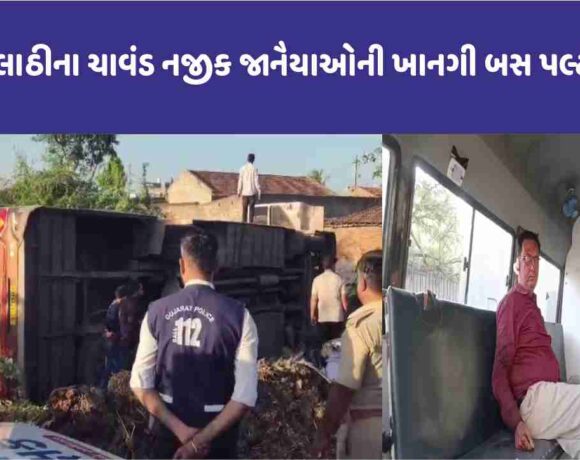 Lathi ના ચાવંડ નજીક જાનૈયાઓની ખાનગી બસ પલ્ટી
