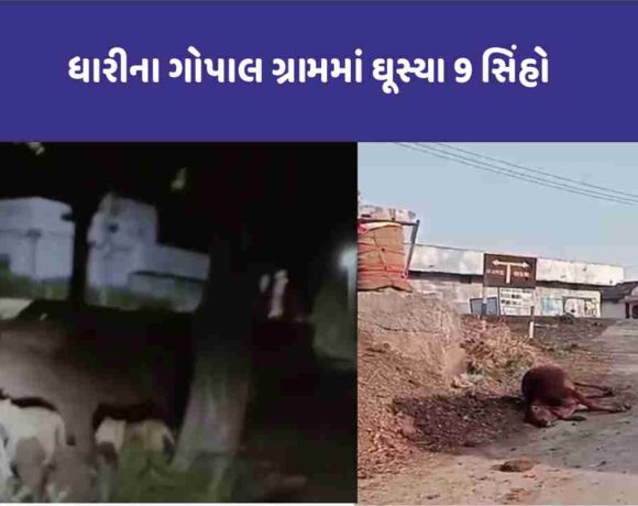 Dhari ના ગોપાલ ગ્રામમાં ઘૂસ્યા 9 સિંહો