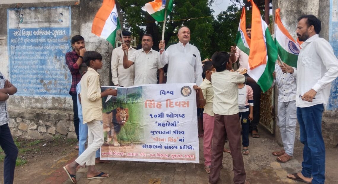 લીલીયા તાલુકા ના અંટાળીયા ગામે પ્રાથમિક શાળા ખાતે વિશ્વ સિંહ દિવસ તેમજ હર ઘર ત ત્રિરંગા યાત્રા યોજાય
