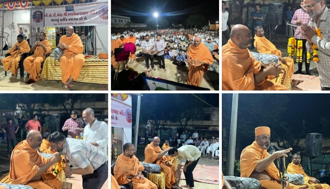 દામનગર શહેર ના BAPS મંદિર પરિસર માં સંવત ૨૦૮૨ ના નવા વર્ષના સ્નેહમિલન સભા યોજાય ગઢડા સ્વામી ના BAPS મંદિર થી પધારેલ સંતોશ્રી પૂ. અધ્યાત્મ સ્વરૂપ સ્વામી ગઢડા (કોઠારી સંતશ્રી, ગઢડા)