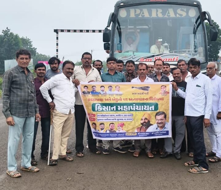 આમ આદમી પાર્ટી દ્વારા સરદાર પટેલ જ્યંતી નિમિતે સુરેન્દ્રનગર જિલ્લાના સાયલા ખાતે યોજાયેલ કિસાન મહા પંચાયત માં સાવરકુંડલા શહેર અને તાલુકાના વિવિધ ગામોમાંથી મોટી સંખ્યામાં આમ આદમી પાર્ટીના કાર્યકર્તાઓ જોડાયા હતા કિસાન મહા પંચાયત માં કડદા પ્રથા અને ખેડૂતો પરના અત્યાચારના અનેક મુદ્દાઓને લઈને ચર્ચા કરવામાં આવી હતી જેમાં આમ આદમી પાર્ટીના રાષ્ટ્રીય સંયોજક અને દિલ્હીના પૂર્વ મુખ્યમંત્રી અરવિંદ કેજરીવાલ તેમજ પંજાબના મુખ્યમંત્રી ભગવંત માન પણ ઉપસ્થિત રહ્યા હતા ગુજરાતમાં ખેડૂતો સાથેના અન્યાય સામે અવાજ ઉઠાવવા સાવરકુંડલા આમ આદમી પાર્ટીના જગદીશભાઈ ડાભી ઠાકોર, એડવોકેટ અમિત રાઠોડ, સાવરકુંડલા લીલીયા વિધાનસભા પ્રભારી ઓધવજીભાઈ રાદડિયા પટેલ, શહેર અગ્રણી ઈશ્વરભાઈ સિધ્ધપુરા સહિતના મોટી સંખ્યામાં કાર્યકર્તાઓ જોડાયા હતા
