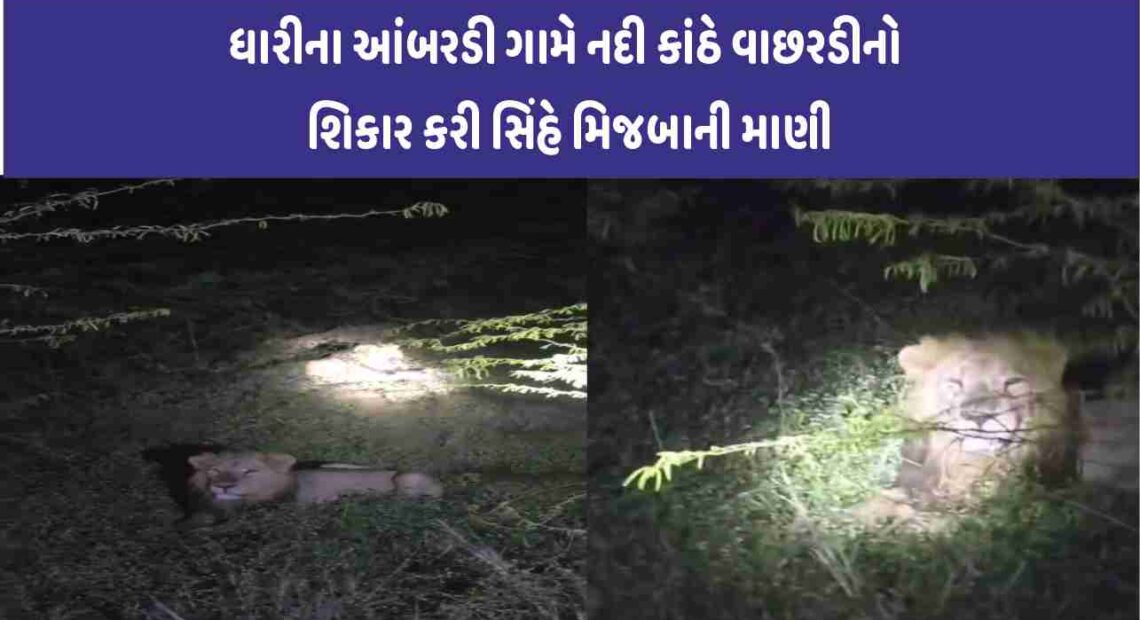 Dhari ના આંબરડી નદીમાં મોડી રાત્રે સિંહે વાછરડીનો કર્યો શિકાર