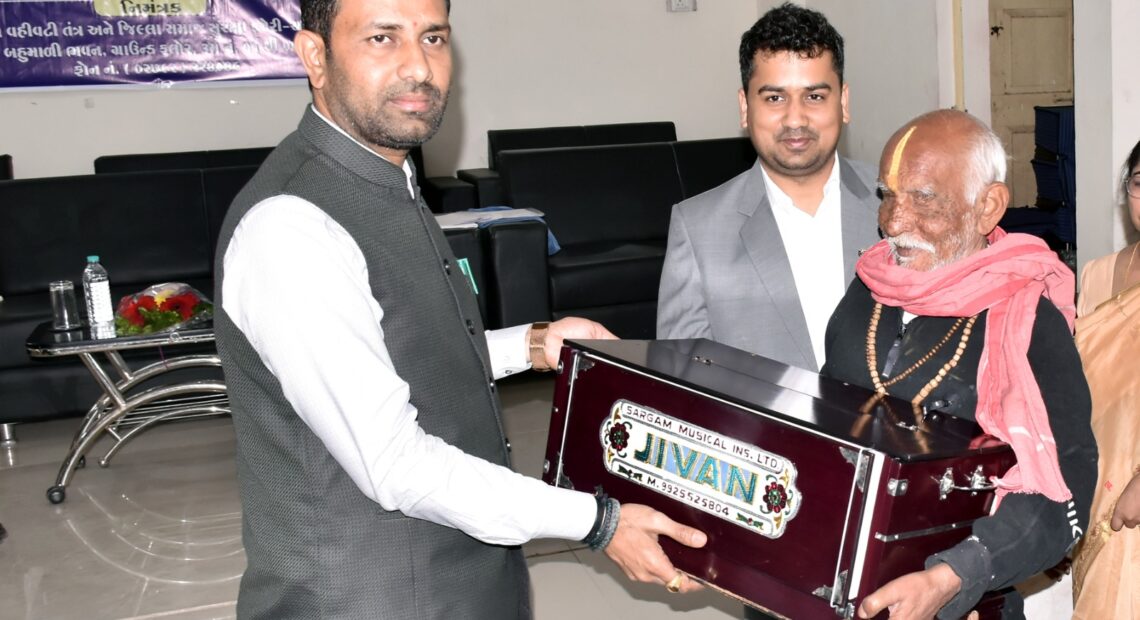 અમરેલી જિલ્લા વહીવટી તંત્ર અને સમાજ સુરક્ષા વિભાગ-અમરેલી દ્વારા શુક્રવારે ‘દિવ્યાંગ સાધન સહાય વિતરણ’ કાર્યક્રમનું આયોજન કરવામાં આવ્યું હતું. શહેરના ડો. બાબા સાહેબ આંબેડકર ભવન ખાતે ઉર્જા અને કાયદો-ન્યાય રાજ્યમંત્રીશ્રી કૌશિકભાઈ વેકરીયાના અધ્યક્ષ સ્થાને દિવ્યાંગજનોને સાધન સહાય વિતરણ કાર્યક્રમ યોજાયો હતો. રાજ્યમંત્રીશ્રી અને જિલ્લા કલેક્ટરશ્રી વિકલ્પ ભારદ્વાજના હસ્તે દિવ્યાંગજનોને રૂ. ૧૫,૪૦,૫૭૫ની કિંમતના હાર્મોનિયમનું વિતરણ કરવામાં આવ્યું હતું. આ કાર્યક્રમમાં ૧૬૭ લાભાર્થીઓને રાજ્ય સરકારની યોજના અંતર્ગત હાર્મોનિયમની ભેટ મળી હતી.