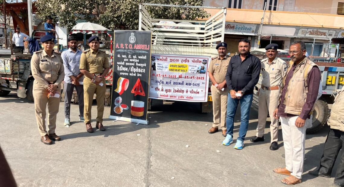 બાબરા માર્કેટિંગ યાર્ડ ખાતે રેડિયમ પટ્ટા લગાવવા સહિતની રોડ સેફ્ટીની પ્રવૃત્તિઓને લઈને કાર્યક્રમ યોજાયો
