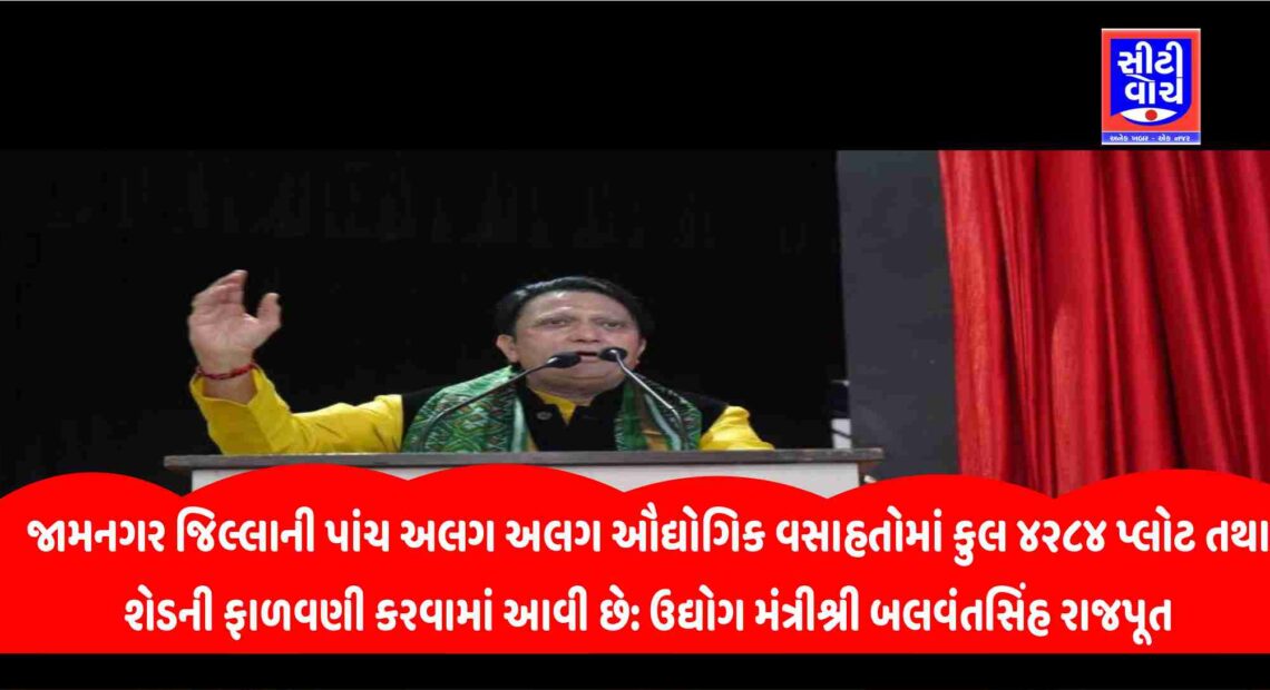 વિધાનસભાના પ્રશ્નોત્તરી કાળમાં જામનગર જિલ્લામાં આવેલી ઔદ્યોગિક વસાહતોની વિગતો આપતાં મંત્રીશ્રી બલવંતસિંહ રાજપૂતે જણાવ્યું કે જી.આઇ.ડી.સી. દ્વારા રાજ્યના તમામ ૩૩ જિલ્લામાં ૨૫૧ તાલુકા પૈકી ૧૪૯ તાલુકામાં અંદાજે ૨૩૯ વસાહતો આવેલી છે. જે અંતર્ગત અત્યાર સુધીમાં જામનગર જિલ્લાની કુલ પાંચ અલગ અલગ ઔદ્યોગિક વસાહતોમાં ૩૬૬૦ પ્લોટ તથા ૬૨૪ શેડની ફાળવણી કરવામાં આવી છે.