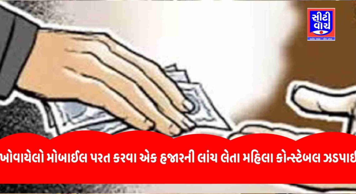 ખોવાયેલો મોબાઈલ પરત કરવા એક હજારની લાંચ લેતા મહિલા કોન્સ્ટેબલ ઝડપાઈ