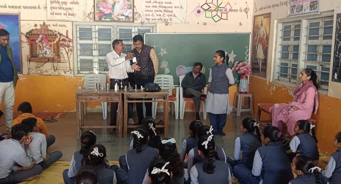 કાર્યક્રમ દરમિયાન શ્રી બલદાણીયા સાહેબે પાણીના વિવિધ નમૂનાઓ લઈ તેનું પ્રત્યક્ષ પરીક્ષણ કર્યું હતું. તેમણે વિદ્યાર્થીઓને સમજાવ્યું હતું કે પાણીમાં TDS (Total Dissolved Solids) નું પ્રમાણ કેટલું હોવું જોઈએ અને આરોગ્યપ્રદ પીવાલાયક પાણીના માપદંડો શું છે. શાળાના ગણિત-વિજ્ઞાન શિક્ષક શ્રી રમણીકભાઈ મારુએ પણ આ પ્રક્રિયામાં જોડાઈને પાણીનું ટેસ્ટિંગ કર્યું હતું. સાથે શિક્ષક શ્રી ઉમેશભાઈ વરમોરા, પરેશભાઈ સતાસીયા, વિશાલભાઈ ગોહિલ તથા ગુલાબબેન કથીરિયા જોડાયા હતા. વિદ્યાર્થીઓએ ખૂબ જ ઉત્સાહપૂર્વક આ પ્રક્રિયા નિહાળી હતી અને કાર્યક્રમના અંતે પાણીને લગતા વિવિધ પ્રશ્નો પૂછ્યા હતા. જેનો શ્રી બલદાણીયા સાહેબે વૈજ્ઞાનિક દ્રષ્ટિકોણથી સચોટ ઉત્તર આપ્યો હતો.આ પ્રસંગે શાળાના આચાર્ય શ્રી રવજીભાઈ બગડાએ વાસમો ટીમનો આભાર માનતા જણાવ્યું હતું કે, આવા કાર્યક્રમોથી વિદ્યાર્થીઓમાં વિજ્ઞાન પ્રત્યે અભિગમ કેળવાય છે અને શુદ્ધ પાણીના મહત્વ વિશે જાગૃતિ આવે છે. સમગ્ર કાર્યક્રમ સફળતાપૂર્વક સંપન્ન થયો હતો.