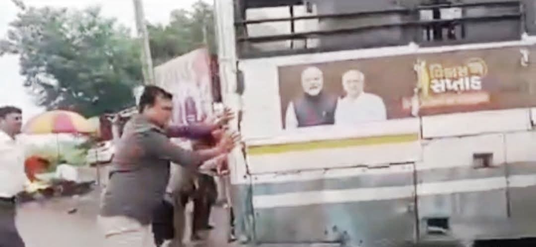 અમરેલી જિલ્લા કોંગ્રેસ પ્રમુખ અને સાવરકુંડલાના પૂર્વ ધારાસભ્ય પ્રતાપ દુધાતે એસટીને ધક્કો મારીને મદદ કરી