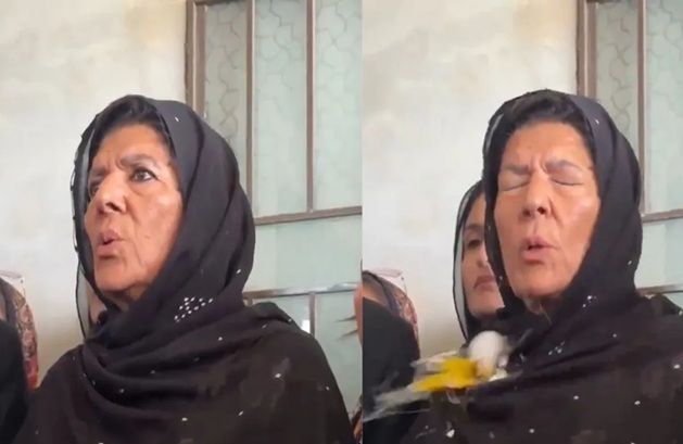 વીડિયો ફૂટેજમાં જોવા મળે છે કે ઈંડું તેમની રામરામમાં વાગ્યું અને પછી તેમના કપડા પર પડ્યું, જેમાં એક મહિલા બૂમો પાડતી સાંભળી શકાય છે, “આ કોણ છે?” અને “કિસને કિયા યે (આ કોણે કર્યું).” ખાનમ, જોકે આઘાત પામી, શાંત થઈને પ્રતિક્રિયા આપી, “કોઈ વાત નહીં, જાને દો”.