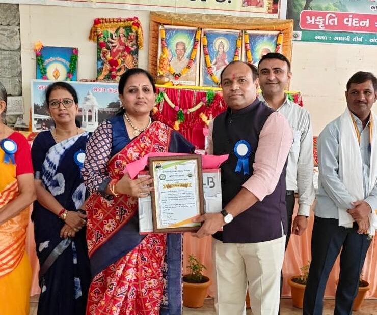 ભાવનગર નગર પ્રાથમિક શિક્ષણ સમિતિ દ્વારા સંચાલિત કસ્તુરબા ગાંધી પ્રાથમિક શાળા નં. 48ના શિક્ષિકા અંજનાબેન ગઢવીને પર્યાવરણ સંરક્ષણ માટેના ઉત્કૃષ્ટ કાર્યો બદલ પ્રકૃતિ મિત્ર એવોર્ડ-2025થી સન્માનિત કરાયા. આ એવોર્ડ કિશનચંદ ટેકચંદ પરિવાર, પ્રકૃતિ મિત્ર ગ્રૂપ ગુજરાત, અને રિહેન એચ. મહેતા વિદ્યાલયના સંયુક્ત ઉપક્રમે ગાયત્રી તીર્થ, અંબાજી ખાતે 15 સપ્ટેમ્બરે આપવામાં આવ્યો. આ કાર્યક્રમમાં મુખ્ય મહેમાન તરીકે સરદારભાઈ ચૌધરી ધારાસભ્ય ખેરાલુ ખાસ ઉપસ્થિત રહ્યા હતા.