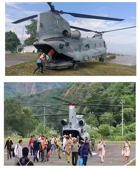 શુક્રવારે ભારતીય વાયુસેનાના હેલિકોપ્ટર દ્વારા હિમાચલ પ્રદેશના ભરમૌરથી ચંબા ખાતે લગભગ 350 ફસાયેલા મણિમહેશ યાત્રાળુઓને બહાર કાઢવામાં આવ્યા હતા.