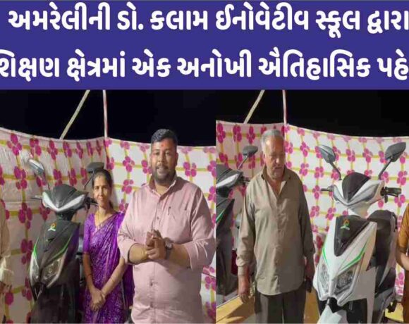 અમરેલી કલામ ઈનોવેટીવ સ્કૂલ દ્વારા ત્રણ શિક્ષકોને સ્કૂટર ભેટ આપી “કલામ રત્ન” એવોર્ડથી સન્માનિત કરવામાં આવ્યા — શિક્ષણ ક્ષેત્રમાં એક અનોખી અને પ્રેરણાદાયી પહેલ શાળાના ત્રણ કર્મનિષ્ઠ શિક્ષકો, જેમણે દિવસ-રાત મહેનત કરીને વિદ્યાર્થીઓના ભવિષ્યને ઘડવામાં પોતાનું અમૂલ્ય યોગદાન આપ્યું છે, એવા શિક્ષકોને ઈલેક્ટ્રિક સ્કૂટર ભેટરૂપે અર્પણ કરીને તેમના પરિવારનું ગૌરવભેર સન્માન Continue Reading