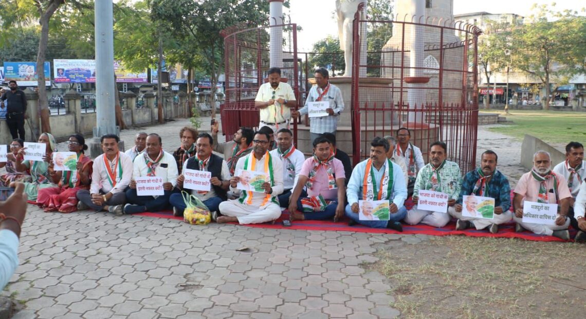 મનરેગા યોજનાના નામ બદલવાના વિરુદ્ધ માં પ્રદર્શન