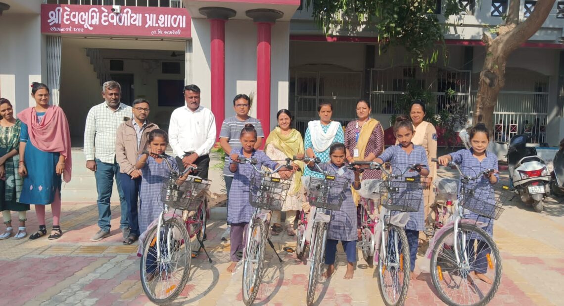 અમરેલી ના દેવભૂમિ દેવળીયા ખાતે સરસ્વતી સાધના યોજના અને SBI ના સહયોગથી સાયકલ વિતરણ કાર્યક્રમ યોજાયો દેવભૂમિ દેવળીયા તા.૧૯/૦૨/૨૬ ના રોજ શ્રી પ્રાથમિક શાળા, દેવભૂમિ દેવળીયા ખાતે દીકરી ઓના શિક્ષણ અને સુવિધાને પ્રોત્સાહન આપવા માટે એક વિશેષ કાર્યક્રમનું આયોજન કરવામાં આવ્યું હતું.આ પ્રસંગે લોક પ્રતિનિધિ શ્રી નાથાલાલ સુખડિયા, માધ્યમિક શાળાના આચાર્ય શ્રી ભૂતૈયા, SBI બેન્કના મેનેજર શ્રી સારિકાબેન વ્યાસ તથા પ્રાથમિક શાળાના આચાર્ય શ્રી અમરીશભાઈ રાજ્યગુરુ ઉપસ્થિત રહ્યા હતા. કાર્યક્રમની મુખ્ય વિગતો નીચે મુજબ છે: