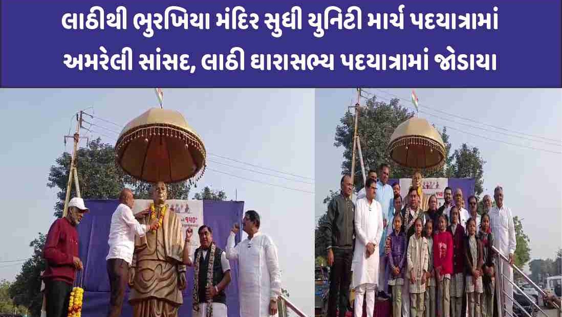 • Lathi મા ભાજપ દ્વારા યુનિટી માર્ચ પદયાત્રા યોજાઈ, સ્વદેશી વસ્તુઓ અપનાવવાના શપથ લેવાયા