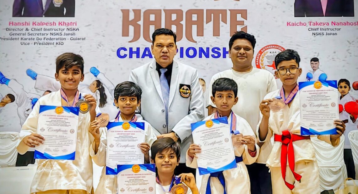 બોટાદ તાજેતરમાં તા.17/18 જાન્યુઆરી 2026ના રોજ દિન્શા પટેલ સ્પોર્ટ્સ કોમ્પ્લેક્સ ચારુસાત યુનિવર્સિટી ચાંગા આણંદ ખાતે યોજાયેલી 15મી નેશનલ કરાટે ચેમ્પિયનશિપમાં ગઢડા – બોટાદ ના કરાટે ખેલાડીઓએ ઉત્કૃષ્ટ પ્રદર્શન કરીને વિવિધ કેટેગરીમાં કુલ 5 મેડલ જીતી જિલ્લાનું નામ રોશન કર્યું છે.