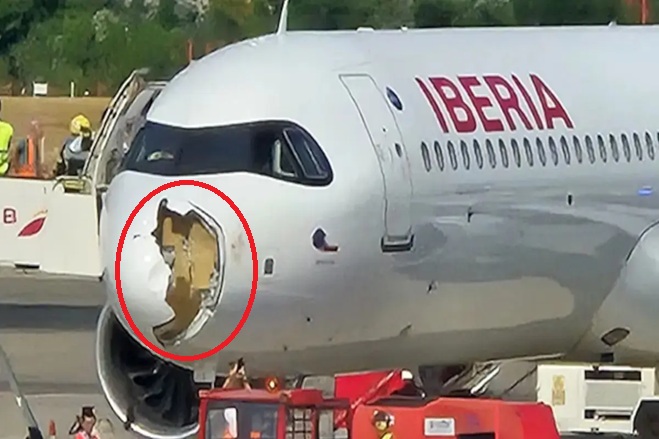 એક મહિના પહેલા એરલાઇનને પહોંચાડવામાં આવેલી આઇબેરિયા એરબસ છ૩૨૧ઠન્ઇ, પેરિસ ઓર્લી એરપોર્ટ (ર્ંઇરૂ) ની ફ્લાઇટ દરમિયાન એક મોટા પક્ષી સાથે અથડાયા બાદ નુકસાન થયું હોવાના અહેવાલ છે.
