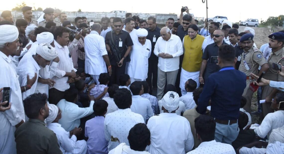 મુખ્યમંત્રી શ્રી ભૂપેન્દ્ર પટેલે ભારે વરસાદ પ્રભાવિત બનાસકાંઠા જિલ્લાના સુઈ ગામના અસરગ્રસ્ત વિસ્તારોની જાત મુલાકાત લઈને સમગ્ર સ્થિતિનો જાયજો મેળવ્યો હતો.