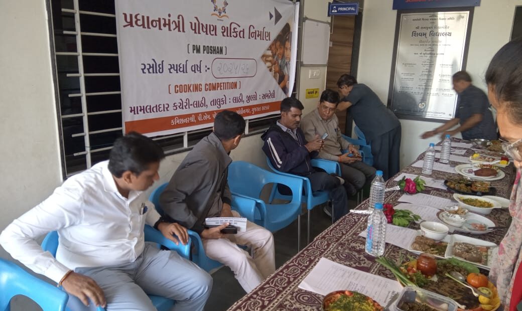 લાઠી તાલુકા મથકે શિવમ વિધાલય ખાતે મધ્યાહન ભોજન યોજના અંતર્ગત , રસોઈ સ્પર્ધા 2025/26 નું આયોજન લાઠી પે .સે. પ્રા શાળા. લાઠી ખાતે કરવામાં આવેલ શ્રી જિલ્લા પ્રાથમિક શિક્ષણાધિકારી અમરેલી, શ્રી તાલુકા પ્રાથમિક શિક્ષણાધિકારી, લાઠી મામલતદાર શ્રી એમ સી રાજ્યગુરુ ,નાયબ મામલતદાર શ્રી , સીડીપીઓ શ્રી લાઠી , મુખ્ય સેવિકા શ્રી લાઠી તથા મધ્યાન ભોજન સુપરવાઇઝર શ્રી વગેરે હાજર રહ્યા હતા મધ્યાહન ભોજન સંચાલકો એ ઉત્સાહ ભેર વાનગી સ્પર્ધા માં ભાગ લીધો હતો