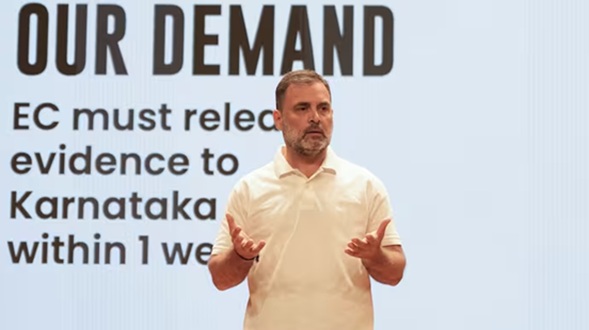 કોંગ્રેસના ભૂતપૂર્વ વડા રાહુલ ગાંધીએ ગુરુવારે ચૂંટણી પંચ પર પોતાનો હુમલો વધુ તીવ્ર બનાવ્યો, અને ભારપૂર્વક જણાવ્યું કે મુખ્ય ચૂંટણી કમિશનર જ્ઞાનેશ કુમાર “લોકશાહીનો નાશ કરવા” પાછળ રહેલી શક્તિઓનું રક્ષણ કરી રહ્યા છે. તેમના આરોપોને સમર્થન આપવા માટે, ગાંધીએ કર્ણાટકની એક વિધાનસભા બેઠકના ડેટાનો ઉલ્લેખ કર્યો, જેમાં દાવો કરવામાં આવ્યો કે કોંગ્રેસના સમર્થકોના મત જાણી જોઈને કાઢી નાખવામાં આવ્યા હતા.