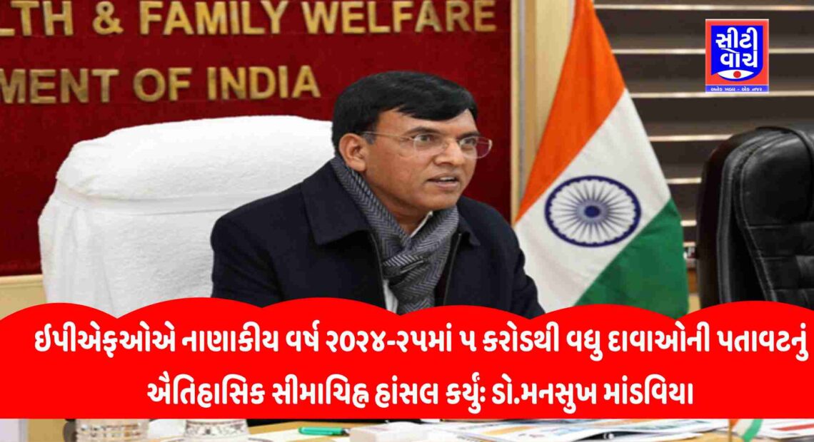 સભ્ય પ્રોફાઇલ સુધારામાંથી ૯૭.૧૮% સભ્યો દ્વારા સ્વ-મંજૂર કરવામાં આવ્યાકેન્દ્રીય શ્રમ અને રોજગાર તથા યુવા બાબતો અને રમતગમત મંત્રી ડો.મનસુખ માંડવિયાએ આજે જાહેરાત કરી હતી કે, એમ્પ્લોઇઝ પ્રોવિડન્ટ ફંડ ઓર્ગેનાઇઝેશન (ઇપીએફઓ)એ તેના ઇતિહાસમાં પ્રથમ વખત ૫ કરોડ દાવાની પતાવટનો આંકડો પાર કરીને ઐતિહાસિક સિદ્ધિ હાંસલ કરી છે. નાણાકીય વર્ષ ૨૦૨૪-૨૫માં ઇપીએફઓએ રૂ. ૨,૦૫,૯૩૨.૪૯ કરોડના ૫.૦૮ કરોડથી વધુ દાવાઓની પ્રક્રિયા કરી છે. જે અગાઉના નાણાકીય વર્ષ ૨૦૨૩-૨૪માં થયેલા રૂ. ૧,૮૨,૮૩૮.૨૮ કરોડના ૪.૪૫ કરોડ દાવાઓને વટાવી ગઈ છે.