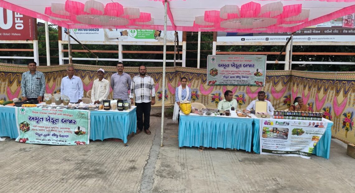 અમરેલી શહેરના સિનિયર સિટીઝન પાર્ક ખાતે પ્રાકૃતિક કૃષિ પેદાશોના વેચાણ અર્થે એક દિવસીય અમૃત ખેડૂત બજારનું આયોજન કરવામાં આવ્યું હતું, જેમાં પ્રાકૃતિક કૃષિ કરતાં ખેડૂતોએ પોતાના ઉત્પાદનોનું સીધા ગ્રાહકોને વેચાણ કર્યું હતું.