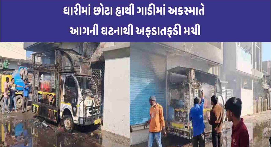 Dhari માં આઈસ્ક્રીમ પાર્લરની ગાડીમાં લાગી આગ