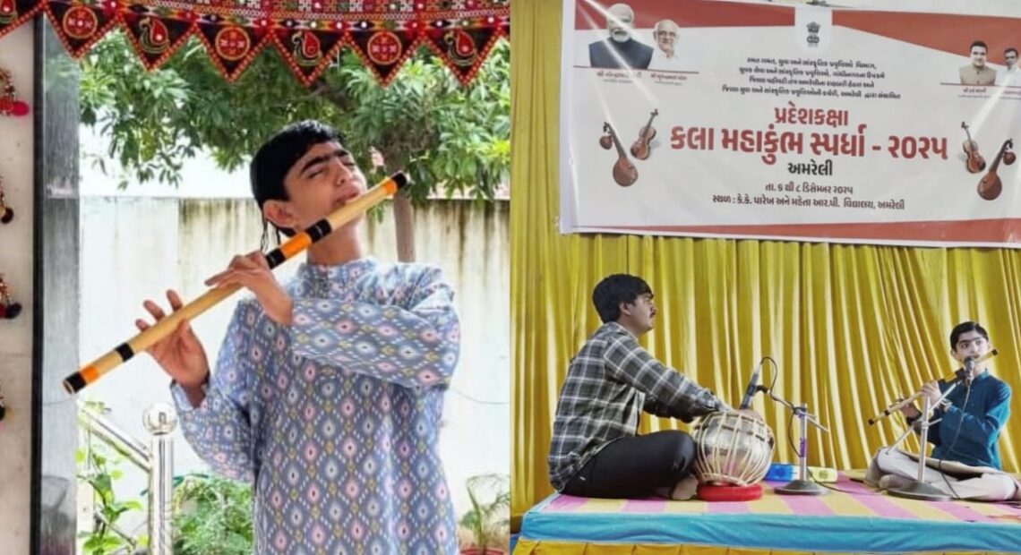 ગુજરાત સરકાર દ્વારા આયોજિત કલામહાકુંભ સ્પર્ધામાં સૌરાષ્ટ્ર કક્ષાએ પ્રથમ સ્થાન મેળવી વાંસળીવાદક શ્રી વૈદિક દવે રાજ્યકક્ષાએ ભાગ લેશે.