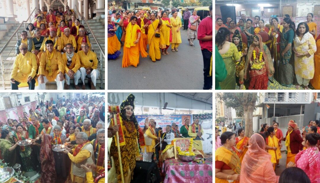 અમદાવાદ મનોદિવ્યાંગ બાળકો ના લાભાર્થે સામાજિક સંસ્થાન દ્વારા શ્રીમદ્ દેવી ભાગવત કથા માં ગાયત્રી પરિજનો જોડાયા અમદાવાદ શ્રીમદ્ દેવી ભાગવત કથા મનોદિવ્યાંગ બાળકોના લાભાર્થે સ્મિત ચાઈલ્ડ એજ્યુકેશન ટ્રસ્ટ અને નવજીવન ચેરિટેબલ ટ્રસ્ટ દ્વારા ધનુર્માસમાં કથાનું આયોજન નવાવાડજ,શ્રીગુર્જર સુથાર સમાજ વાડી,શ્રીનાથ બસ ડેપો સામે કરેેલ છે જેમાં આજના શિવ વિવાહના મંગલ પ્રસંગમાં ગાયત્રી પરિવાર નારણપુરાના પરિજનોએ ઉત્સાહ પૂર્વક ભક્તિમય વાતાવરણમાં જોડાઈ સહયોગ સહકાર આપ્યો હતો સમગ્ર કથામૃૃત કાર્યક્રમનું રસપાન સંગીતમય વાતાવરણમાં વ્યાસપીઠે બીરાજમાન શાસ્ત્રી શ્રીભાવેશભાઈ વ્યાસ કરાવ્યું હતું.