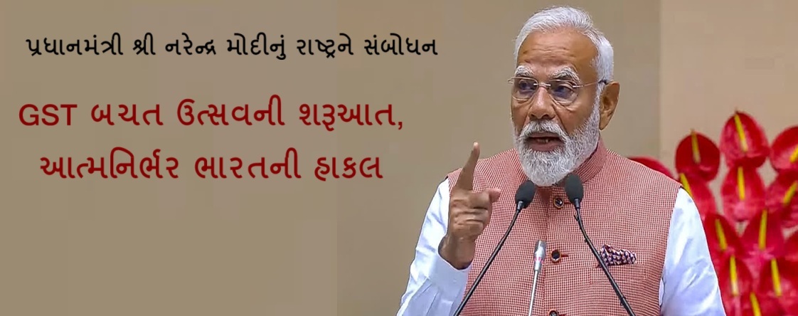 પ્રધાનમંત્રી શ્રી નરેન્દ્ર મોદીએ વીડિયો કોન્ફરન્સિંગ દ્વારા રાષ્ટ્રને સંબોધન કર્યું. શક્તિની ઉપાસનાના તહેવાર નવરાત્રિની શરૂઆત પર તમામ નાગરિકોને હાર્દિક શુભેચ્છાઓ પાઠવતા તેમણે ટિપ્પણી કરી કે નવરાત્રિના પહેલા દિવસથી જ દેશ આત્મનિર્ભર ભારત અભિયાનમાં એક મહત્વપૂર્ણ પગલું ભરી રહ્યો છે. 22 સપ્ટેમ્બરના સૂર્યોદયથી, દેશ આગામી પેઢીના GST સુધારાઓ લાગુ કરશે. પ્રધાનમંત્રીએ ભાર મૂક્યો કે આ સમગ્ર ભારતમાં GST બચત ઉત્સવ (બચત ઉત્સવ)ની શરૂઆત છે. તેમણે ભાર મૂક્યો કે આ તહેવાર બચતમાં વધારો કરશે અને લોકોને તેમની પસંદગીની વસ્તુઓ ખરીદવાનું સરળ બનાવશે. શ્રી મોદીએ નોંધ્યું કે આ બચત ઉત્સવના લાભ ગરીબ, મધ્યમ વર્ગ, નવ મધ્યમ વર્ગ, યુવાનો, ખેડૂતો, મહિલાઓ, દુકાનદારો, વેપારીઓ અને ઉદ્યોગસાહસિકો સુધી પહોંચશે. તેમણે ટિપ્પણી કરી કે આ તહેવારોની મોસમમાં, દરેક ઘર ખુશી અને મધુરતામાં વધારો કરશે. અભિનંદન આપતા, પ્રધાનમંત્રીએ દેશભરના કરોડો પરિવારોને આગામી પેઢીના GST સુધારાઓ અને GST બચત ઉત્સવ માટે શુભેચ્છાઓ પાઠવી. તેમણે ભાર મૂક્યો કે આ સુધારાઓ ભારતની વિકાસગાથાને વેગ આપશે, વ્યવસાયિક કામગીરીને સરળ બનાવશે, રોકાણોને વધુ આકર્ષક બનાવશે અને ખાતરી કરશે કે દરેક રાજ્ય વિકાસની દોડમાં સમાન ભાગીદાર બનશે.