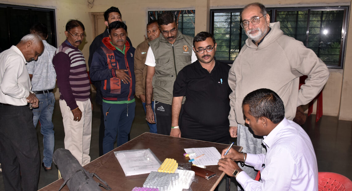 અમરેલી શહેરના રેડ ક્રોસ ભવન ખાતે વહેલી સવારે પત્રકારશ્રીઓના હેલ્થ ચેકઅપ માટે જુદા- જુદા તબીબી ટેસ્ટ માટે બ્લડ સેમ્પલ લેવામાં આવ્યા હતા. આ સાથે ઇ.સી.જી તેમજ એક્સરે પણ લેવામાં આવ્યો હતો. આમ, પત્રકારશ્રીઓના આરોગ્યનાં રિપોર્ટ આપવામાં આવશે. જેથી આરોગ્યની સંભાળ માટે જરૂરી તકેદારી લઈ શકાય.