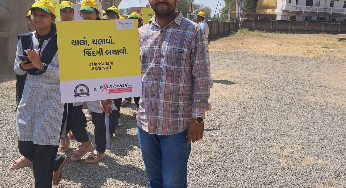 દામનગર શહેર ની શેક્ષણિક સંસ્થાન શ્રી સહજાનંદ એજ્યુકેશન ટ્રસ્ટ સંચાલિત સ્વામી નારાયણ ગુરુકુલ પરિસર માં વર્ક ફોમ હર કાર્યક્રમ નું અમરેલી ની આશીર્વાદ ફાઉન્ડેશન દ્વારા આયોજન કરાયું હતું સહજાનંદ એજ્યુકેશન ટ્રસ્ટ ગુરુકુલ ના પ્રાથમિક થી લઈ ઉચ્ચતર માધ્યમિક શાળા પરિવાર ના તમામ વિદ્યાર્થી ભાઈ બહેનો એ ઉત્સાહ ભેર ભાગ લીધો હતો “હાલો રે હાલો કોઈ નો જીવ બચવા હાલો” આશીર્વાદ ફાઉન્ડેશન ના કો ઓડીનેટર મીતાબેન જોશી ના માર્ગદર્શન હેઠળ વર્ક ફોમ હર માર્ચ યોજાય હતી જેમાં આચાર્ય વી બી ડોબરીયા પ્રિન્સિપાલ નિલેશભાઈ કોલડીયા ટિમ લીડર બિમલ પંડયા શિક્ષક કાકડીયા નીતિન ગોસ્વામી સરવૈયા રામાણી ધ્રુવીબેન તેમજ દીપ્તિબેન સહિત સમગ્ર શાળા પરિવાર સ્ટાફ દ્વારા વર્ક ફોર્મ હર કાર્યક્રમ દ્વારા સર્વ ને ફિટનેસ અવનેસ જાગૃતિ થી અવગત કરાયા હતા કોણ કેટલા પગલાં ચાલ્યા તેનું રજીસ્ટેશન બાદ તેને પ્રોત્સાહિત ભેટ પુરસ્કાર થી પ્રોત્સાહિત કરતા વર્ક ફોમ હર કાર્યક્રમ માં ઉત્સાહ ભેર ગુરુકુલ સંસ્થાને ભાગ લીધો હતો ચાલો ચલાવો કોઈ ની જિંદગી બચાવો ના સ્લોગન સાથે ટિમ લીડર બિમલ પંડયા ના નેતૃત્વ માં માર્ચ પ્રસ્થાન કરાય હતી