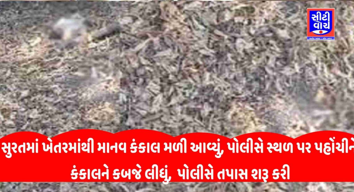 સુરતમાં ખેતરમાંથી માનવ કંકાલ મળી આવ્યું, પોલીસે સ્થળ પર પહોંચીને કંકાલને કબજે લીધું, પોલીસે તપાસ શરૂ કરી