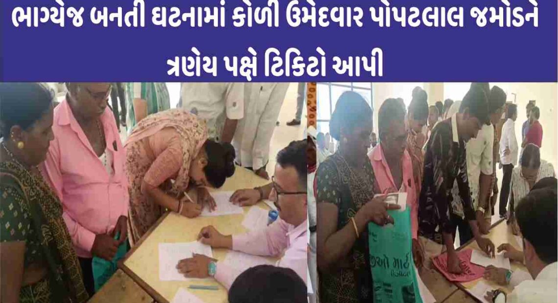 ભાગ્યેજ બનતી ઘટનામાં કોળી ઉમેદવાર પોપટલાલ જમોડને ત્રણેય પક્ષે ટિકિટો આપી