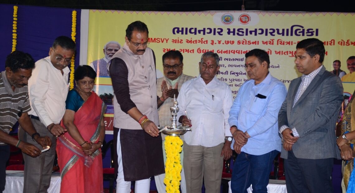 રૂ. ૪.૭૭ કરોડના ખર્ચે ચિત્રા-ફુલસર-નારી વોર્ડમાં રમત-ગમત ઉદ્યાનનું ખાતમુહૂર્ત કર્યું હતું.