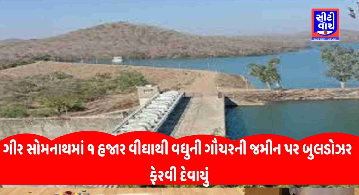 ક્યાંક ગૌચરની જમીન પર બુલડોઝર ચાલ્યાં તો ક્યાંક ઉભા પાક પર ટ્રેક્ટરો ફેરવી દેવાયાં ગીર સોમનાથ જિલ્લાના કલેક્ટર ગેરકાયદે દબાણોને લઈને એક્શન મોડમાં છે. પહેલા તેમણે ગેરકાયદે દબાણો પર તવાઈ બોલાવી અને હવે હજારો વીઘાના ગૌચર પર થયેલા દબાણો દૂર કરવાની કામગીરી હાથ ધરી છે. ૧ હજાર વીઘાથી વધુની ગૌચરની જમીન પર બુલડોઝર ફર્યુ છે.ગીર ગઢડાના ધોકડવા ગામે દબાણો હટાવાયા કામગારી તેજ કરવામાં આવી છે. પોલીસ બંદોબસ્ત વચ્ચે ૧ હજાર વીઘાથી વધુની જગ્યાઓ પર દબાણો દૂર કરવા કામગીરી હાથ ધરવામાં આવી છે.