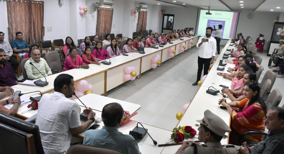મહિલા કર્મચારીઓ સાથે ‘સંવાદ સેતુ’ કાર્યક્રમમાં પી.જી.વી.સી.એલ વર્તુળ કચેરી અધિક્ષક ઈજનેર શ્રી જે.એસ.દહિયા અને અન્ય અધિકારીશ્રીઓ, બહોળી સંખ્યામાં મહિલા કર્મચારીઓ સહભાગી બન્યા હતા.