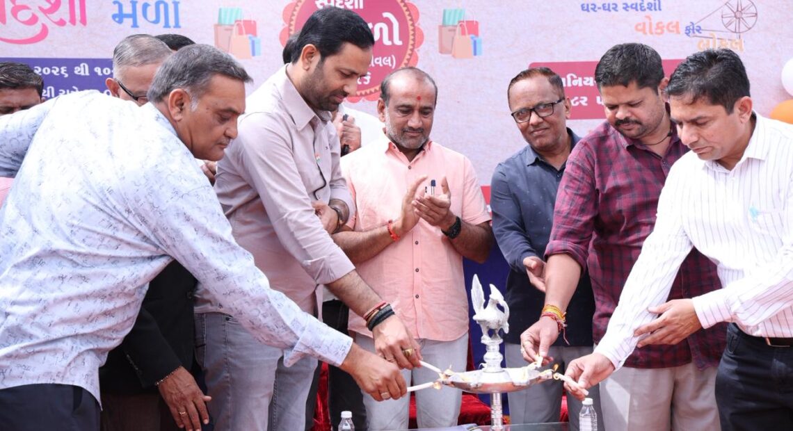 અમરેલી નગરપાલિકા દ્વારા વોકલ ફોર લોકલ અભિયાને પ્રોત્સાહન આપવા તેમજ “હર ઘર સ્વદેશી – ઘર ઘર સ્વદેશી”ના સંદેશને જનમાનસ સુધી પહોંચાડવાના હેતુસર “સ્વદેશી મેળો – શોપિંગ ફેસ્ટિવલ ૨૦૨૬”નું ભવ્ય આયોજન કરવામાં આવ્યું છે. આ સ્વદેશી મેળાનો પ્રારંભ રાજ્યના ઊર્જા અને પેટ્રોકેમિકલ્સ, કાયદો અને ન્યાય, વૈધાનિક અને સંસદીય બાબતોના રાજ્યમંત્રીશ્રી કૌશિકભાઈ વેકરીયાના હસ્તે થયું હતું.