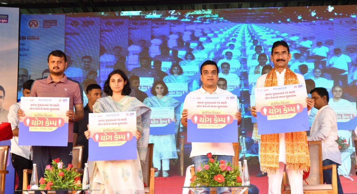 મુખ્યમંત્રી શ્રી ભૂપેન્દ્ર પટેલના માર્ગદર્શનમાં “સ્વસ્થ ગુજરાત, મેદસ્વિતા મુક્ત ગુજરાત”ના સંકલ્પને સાકાર કરવા અને વડાપ્રધાન શ્રી નરેન્દ્રભાઈ મોદીના ૭૫માં જન્મ દિવસ નિમિત્તે રાજ્યભરમાં વિવિધ ૭૫ સ્થળોએ મેદસ્વિતા નિવારણ ‘યોગ કેમ્પ’નો આજે ગાંધીનગર ખાતેથી ગૃહ રાજ્ય મંત્રી હર્ષ સંઘવીએ ભવ્ય શુભારંભ કરાવ્યો હતો.
