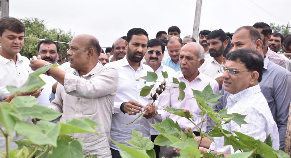 રાજ્યમંત્રીશ્રીએ ખેડૂતોના ખેતરોમાં જઈને મગફળી-કપાસ સહિતના પાકોમાં કમોસમી વરસાદથી નુકસાનીનું નિરીક્ષણ કર્યું હતું. તેમણે ખેડૂતોબંધુઓ સાથે સંવાદ સાધીને પાક નુકસાનીની વિગતો પણ મેળવી હતી.