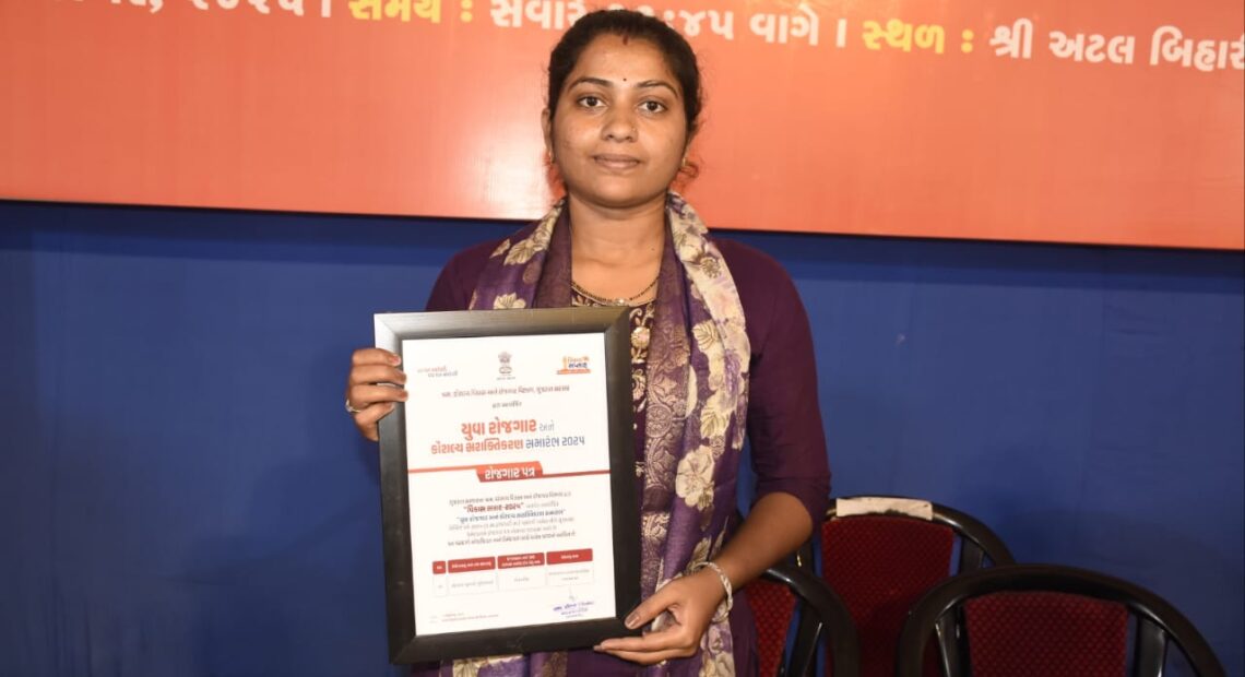 સમારંભમાં રોજગાર પત્ર મેળવનાર ભાવનગર જિલ્લાના પાલીતાણા તાલુકાના રહીશ સુશ્રી દિપાલીબેન