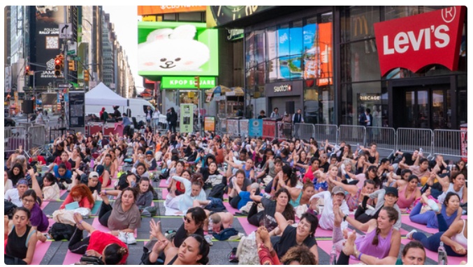 આંતરરાષ્ટ્રીય યોગ દિવસ ૨૦૨૫ ની ઉજવણી માટે ન્યૂ યોર્કનો ટાઇમ્સ સ્ક્વેર ઓપન એર યોગ સ્ટુડિયોમાં ફેરવાયો