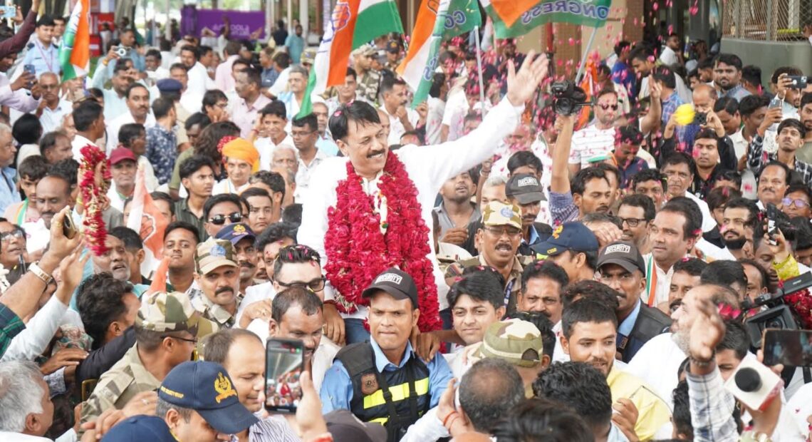 ગુજરાત કોંગ્રેસના નવનિયુક્ત પ્રમુખ અમીત ચાવડાનું એરપોર્ટ પર હકડેઠઠ મેદની વચ્ચે ભવ્ય સ્વાગત