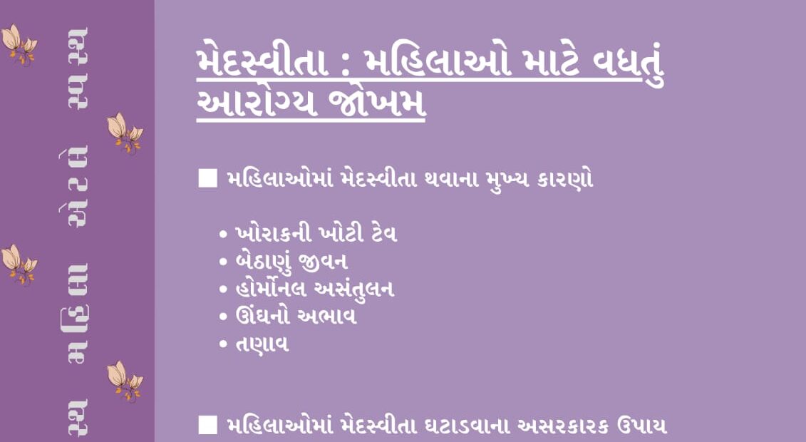 મેદસ્વીતા એ જીવનશૈલી સંબંધિત રોગ છે. મહિલાઓનું સ્વાસ્થ્ય સમગ્ર પરિવારના સ્વાસ્થ્ય સાથે જોડાયેલું