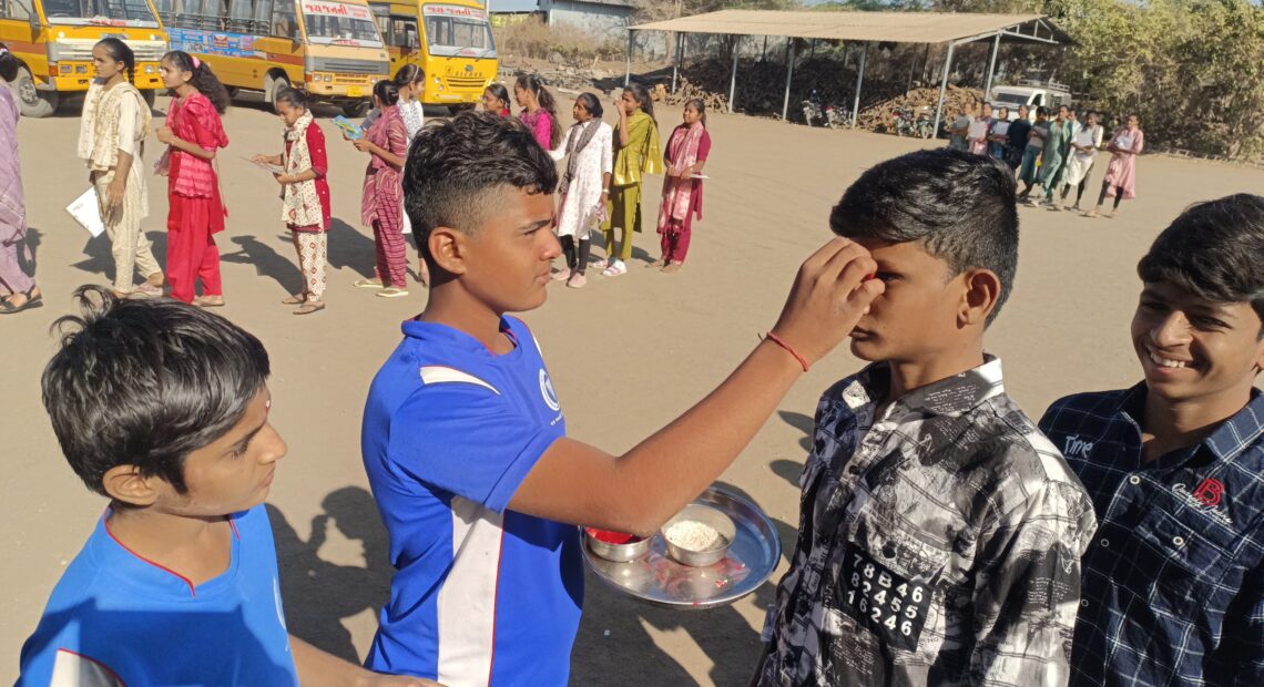 જય જનની વિધ્યા સંકુલમાં બોર્ડની પરીક્ષણ પ્રથમ દિવસે પરીક્ષાર્થીઓનું કુમકુમ તિલક સાથે મોં મીઠા કરાવીને સ્વાગત કરાયું