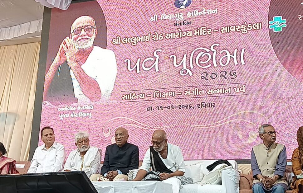 શિક્ષણનું સત્ય, સાહિત્યનો પ્રેમ અને સેવાની કરુણા એમ શિક્ષણ, સાહિત્ય અને સંગીતનું સાયુજ્ય સાધીને શ્રી વિદ્યાગુરુ ફાઉન્ડેશન સંચાલિત શ્રી લલ્લુભાઈ શેઠ આરોગ્ય મંદિર સાવરકુંડલા દ્વારા છેલ્લા પંદર વર્ષથી પ્રતિ વર્ષ સાહિત્ય – શિક્ષણ અને સંગીત સન્માન પર્વ ઉજવવામાં આવે છે. આ વર્ષે પર્વ પૂર્ણિમા પર્વની ઉજવણીનો પ. પૂ. મોરારિબાપુના આશીર્વાદ સાથે પ્રારંભ થયો.