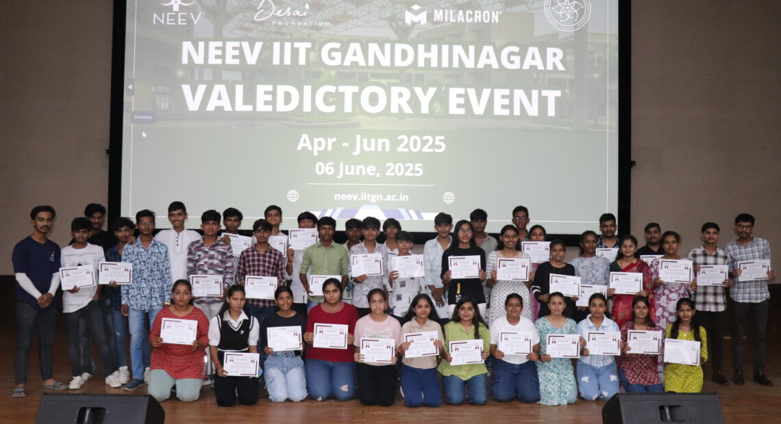 ભારતીય પ્રૌધોગિક સંસ્થાન ગાંધીનગર(આઈ.આઈ.ટી. ગાંધીનગર)ના સમુદાય વિકાસ પ્રોગ્રામ “નીવ” દ્વારા એપ્રિલ – જૂન ૨૦૨૫ દરમિયાન ગાંધીનગર જિલ્લાના ગ્રામ્ય વિસ્તારોમાંથી આવેલ યુવાનો અને મહિલાઓ માટે કુલ છ સ્કિલ ડેવલપમેન્ટ કોર્સ સફળતાપૂર્વક આયોજન કર્યું હતું. કુલ ૨૦૯ પ્રતિભાગીઓને ૬ થી ૯ અઠવાડિયાના સમયગાળાના આ કોર્સોમાં તાલીમ આપવામાં આવી હતી. આ તાલીમ ડ્ઢીજટ્ઠૈ ર્હ્લેહઙ્ઘટ્ઠંર્ૈહ ્િેજં સાથે ભાગીદારી અને સ્ૈઙ્મટ્ઠષ્ઠિર્હ ૈંહઙ્ઘૈટ્ઠ ઁદૃં. ન્ંઙ્ઘ.ના સહયોગથી આયોજન કરવામાં આવી હતી.